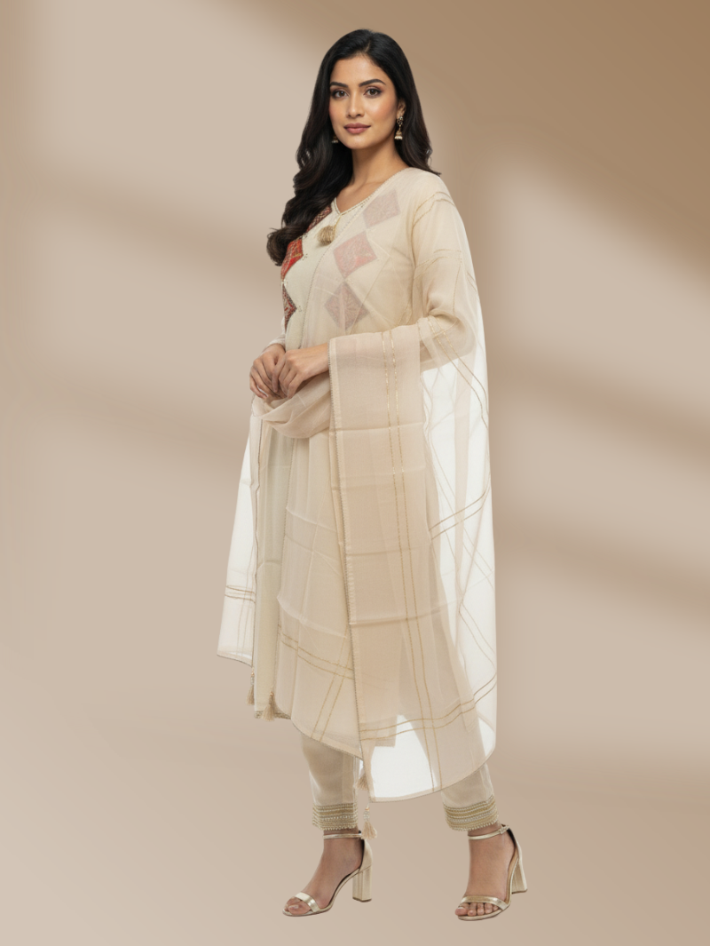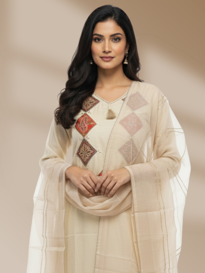 Royal Ivory Chanderi Straight Suit with Zardozi Work – Aeen
